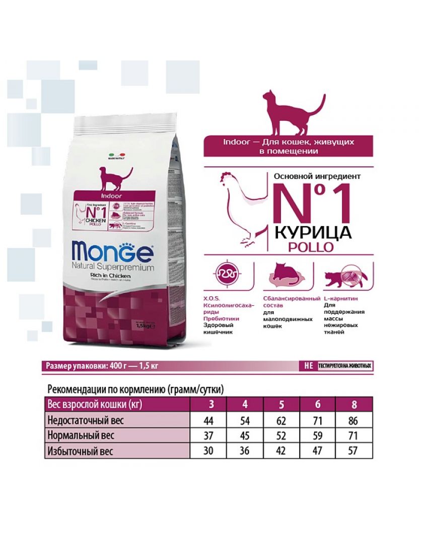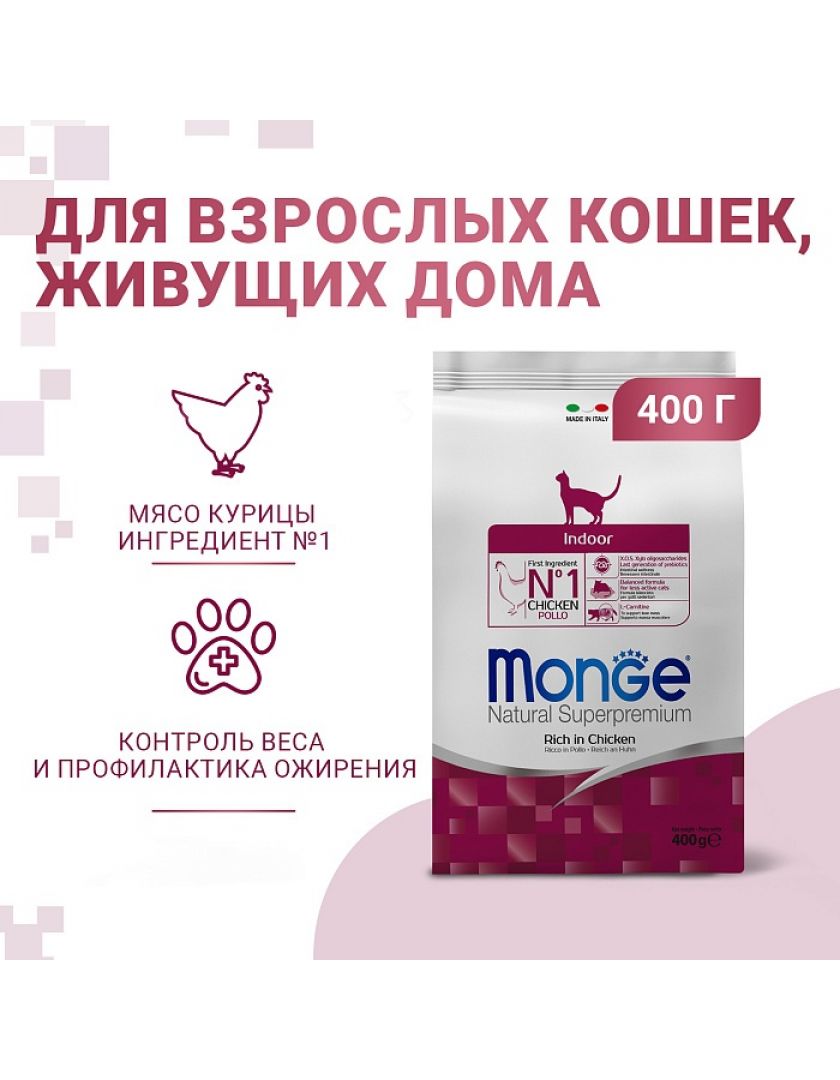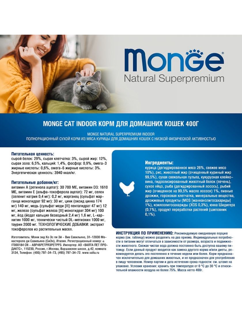 Monge (Монж) Cat Daily Line Indoor сухой корм из мяса курицы для домашних кошек и котов