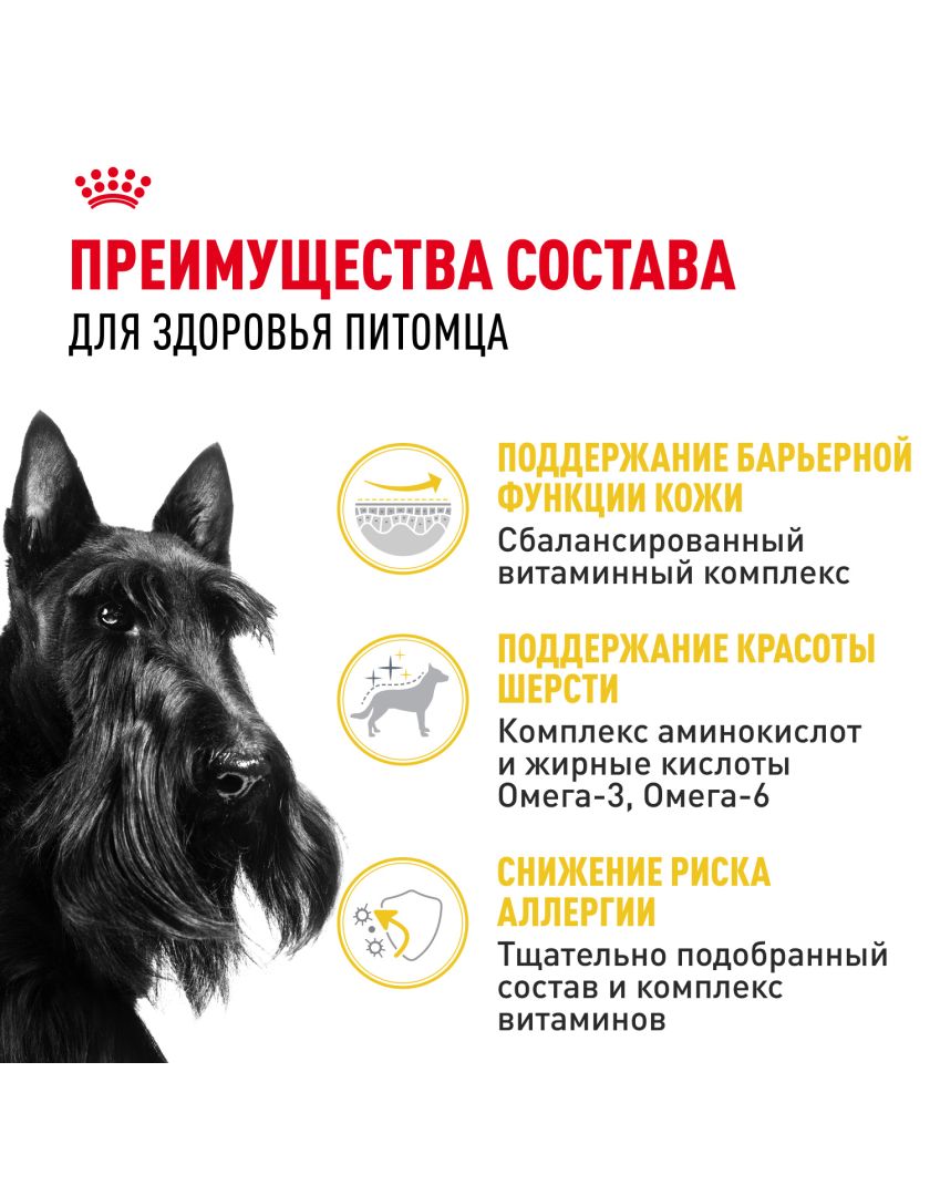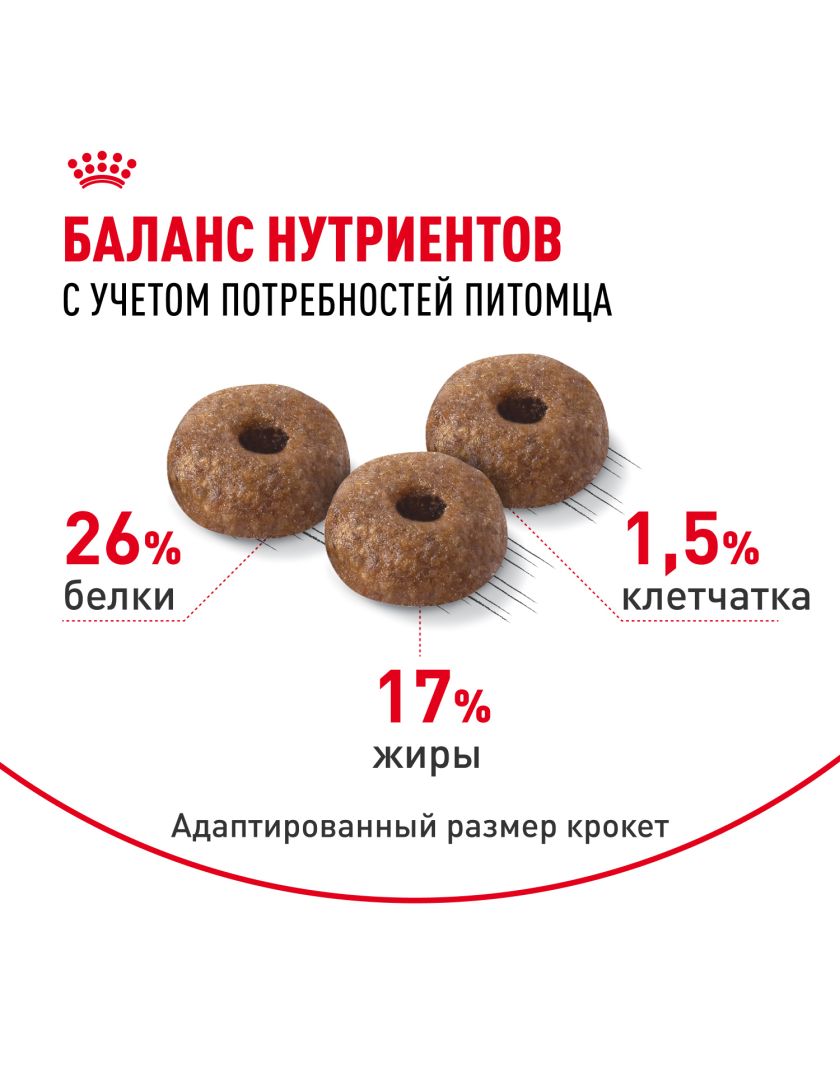 Обогащенный полиненасыщенными жирными кислотами (Омега-3 и Омега-6), ROYAL CANIN® Mini Dermacomfort (МИНИ ДЕРМАКОМФОРТ) поддерживает красоту шерсти, а комплекс витаминов группы В помогает усилить барьерную функцию кожи и обеспечить ее здоровье.