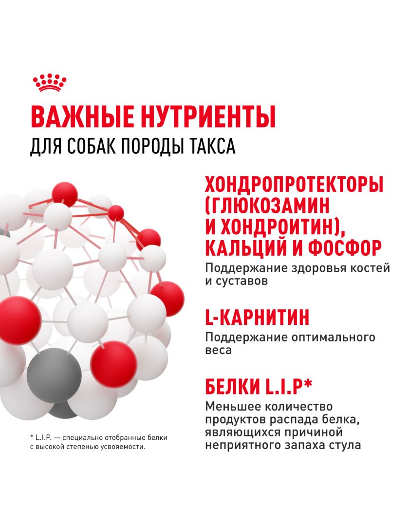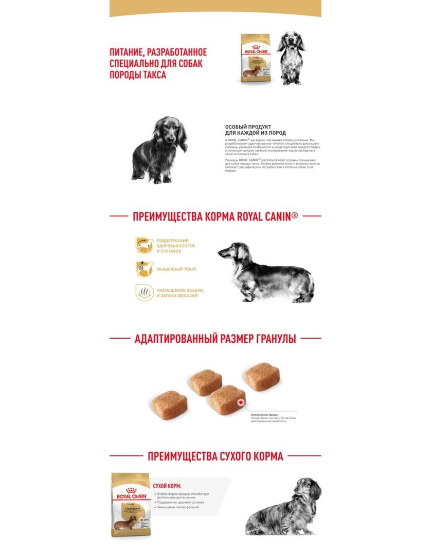 Корм сухой полнорационный для собак - Cпециально для взрослых собак породы такса в возрасте 10 месяцев и старше DACHSHUND ADULT (ТАКСА ЭДАЛТ) ROYAL CANIN®, подходящий для собак породы такса в возрасте от 10 месяцев, специально разработан с учетом потребностей вашей собаки в питательных веществах.