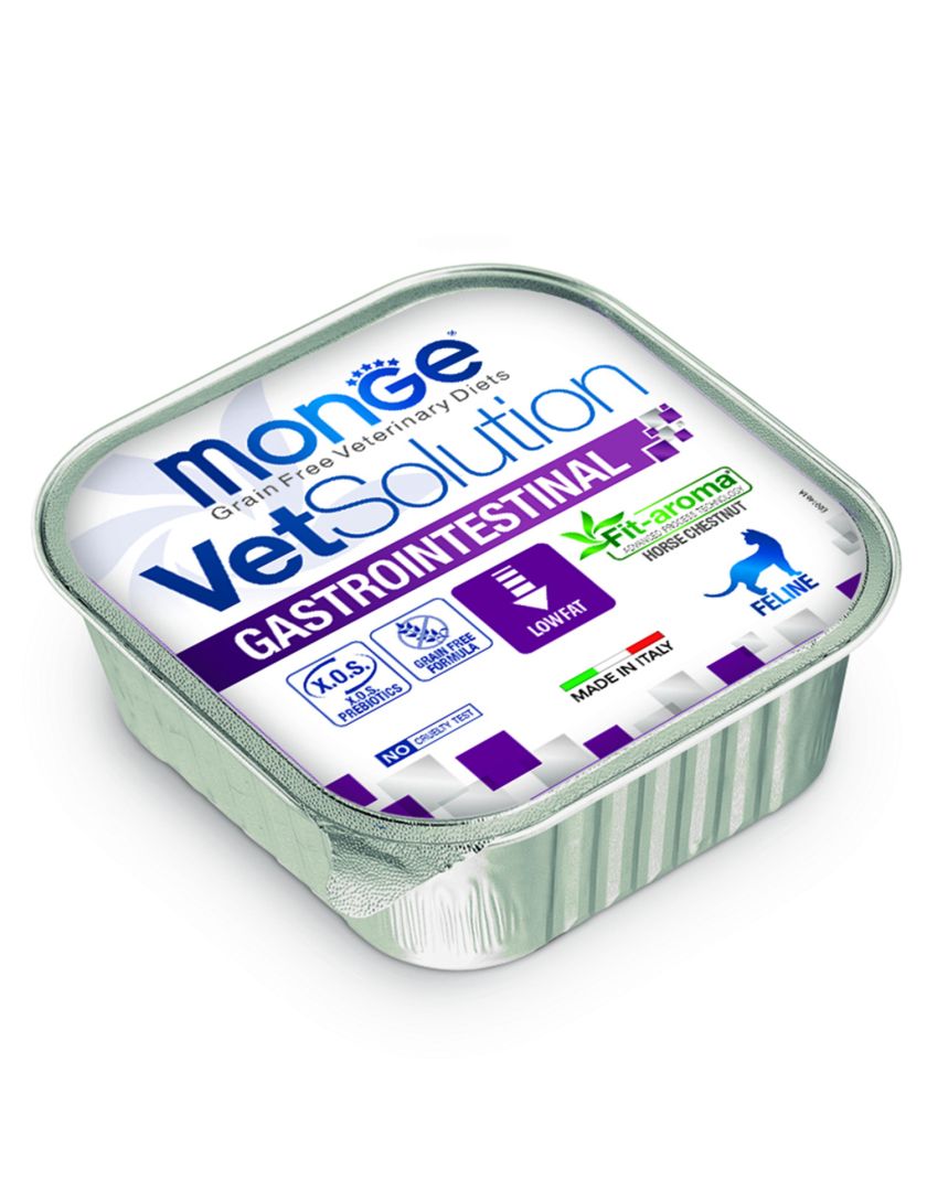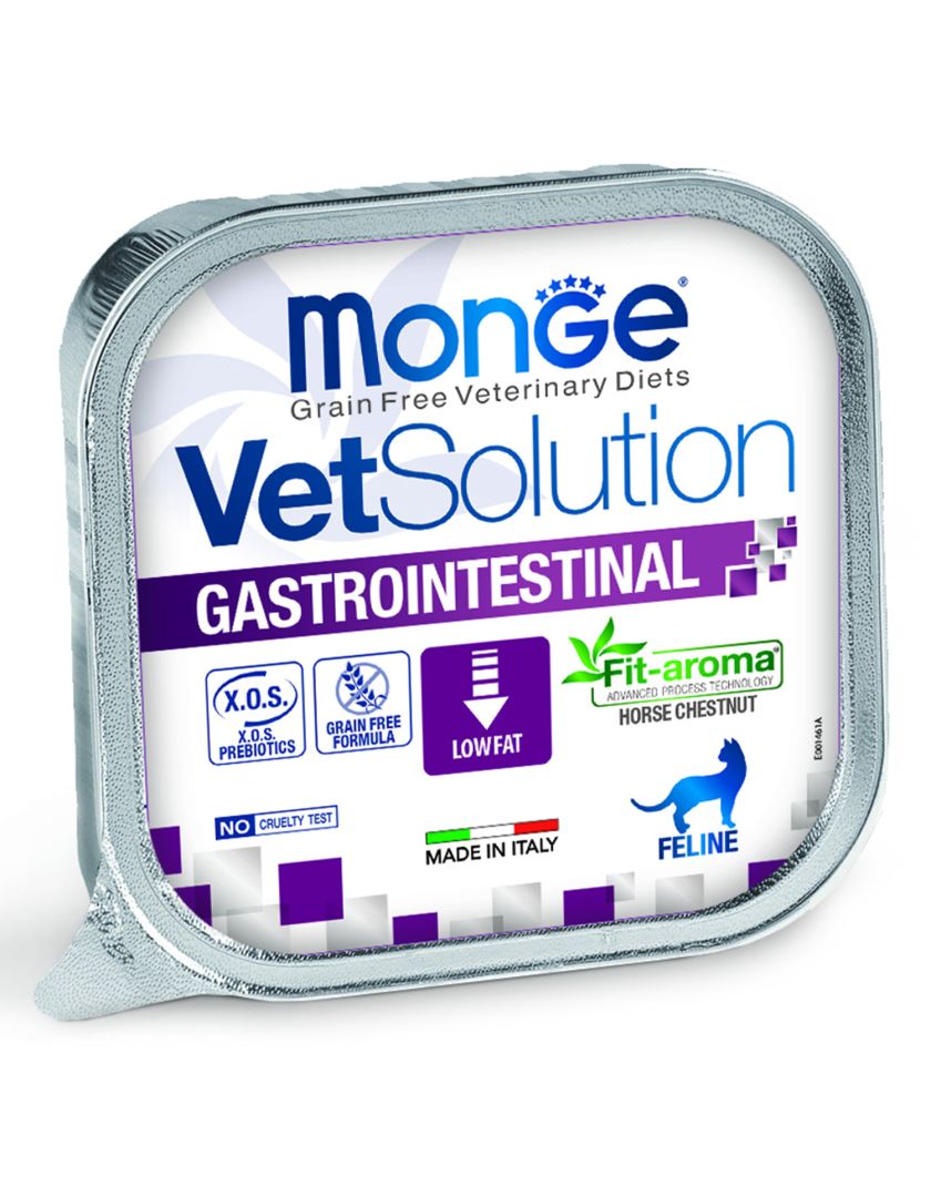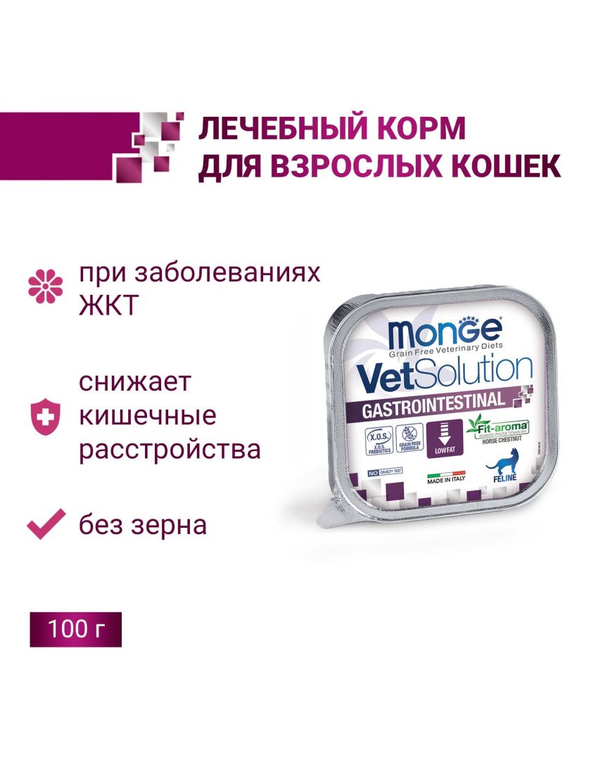 Лечебный корм Monge (Монж) VetSolution Cat Gastrointestinal Гастро интестинал для кошек при заболеваниях желудочно-кишечного тракта, таких как гастрит, колит, острый и хронический гастроэнтерит, диарея и избыточный бактериальный рост в тонком отделе кишечника 100г.