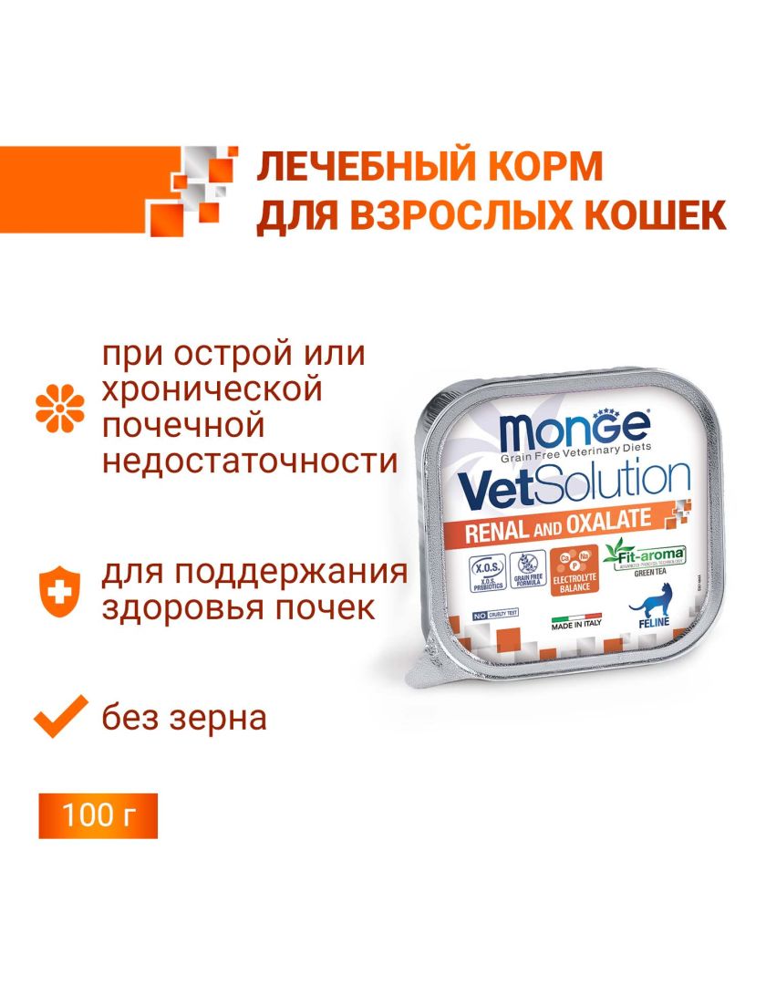 Влажный диетический корм для кошек Monge VetSolution Cat Renal and Oxalate при ХПН и профилактике образования оксалатов