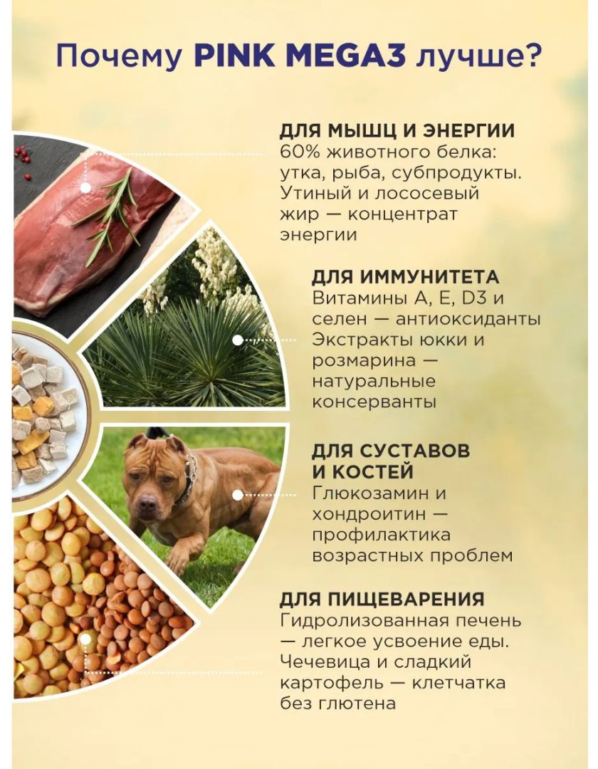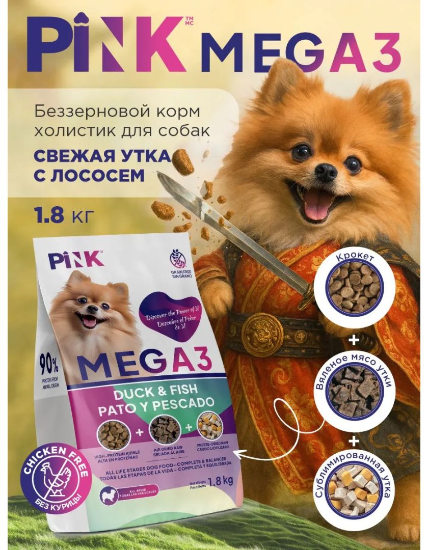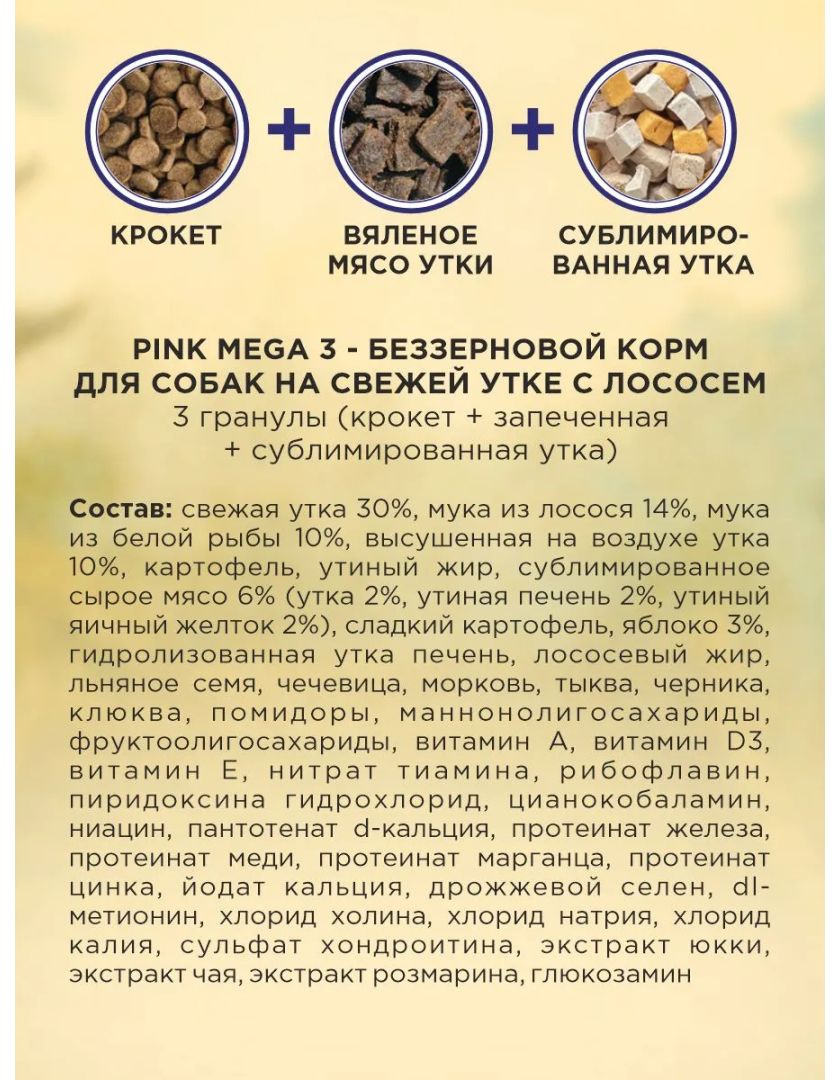 Сухой корм для собак PINK MEGA 3 Утка с лососем