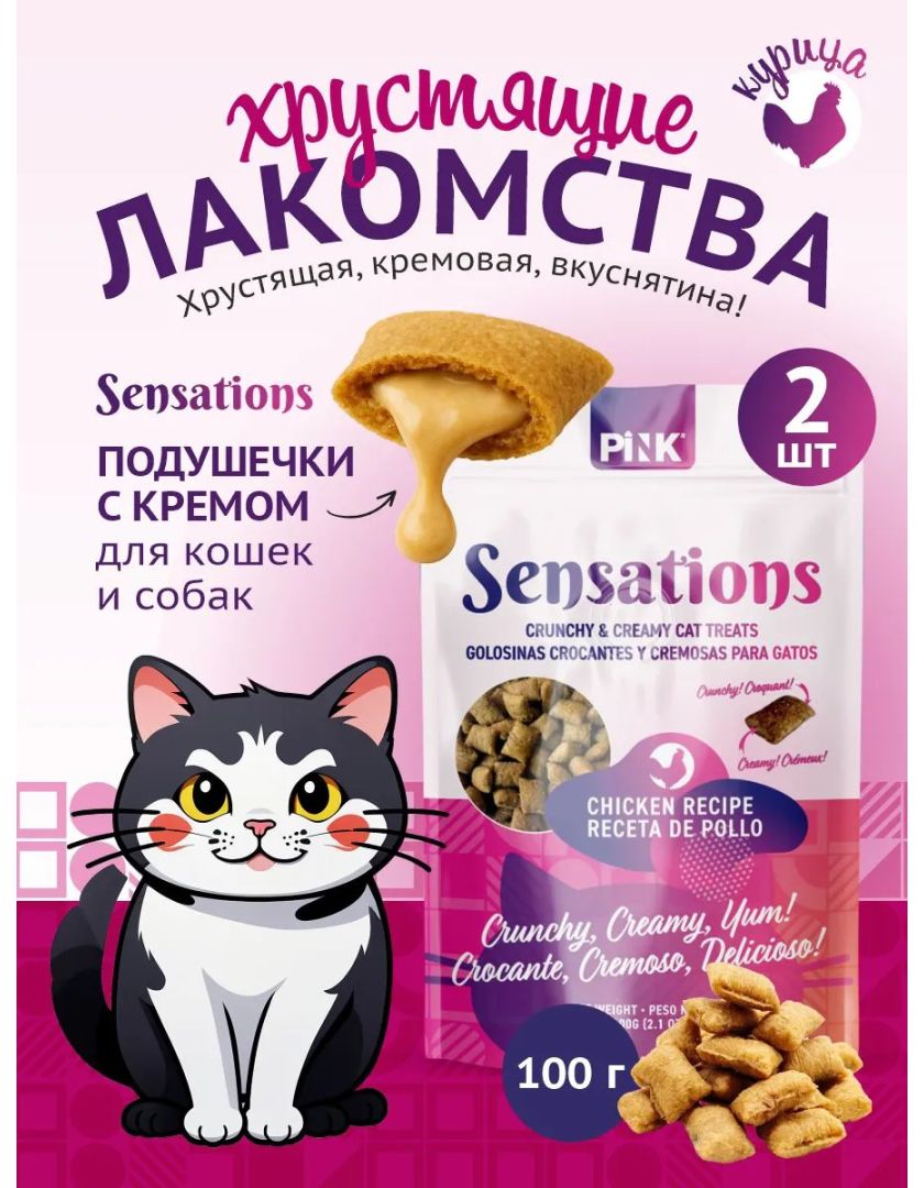 Лакомство для кошек PINK SENSATIONS Хрустящие подушечки с курицей