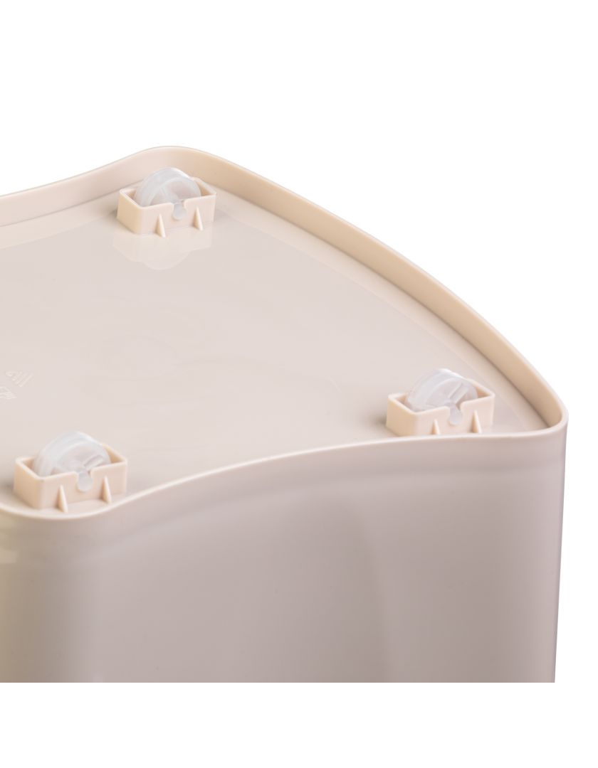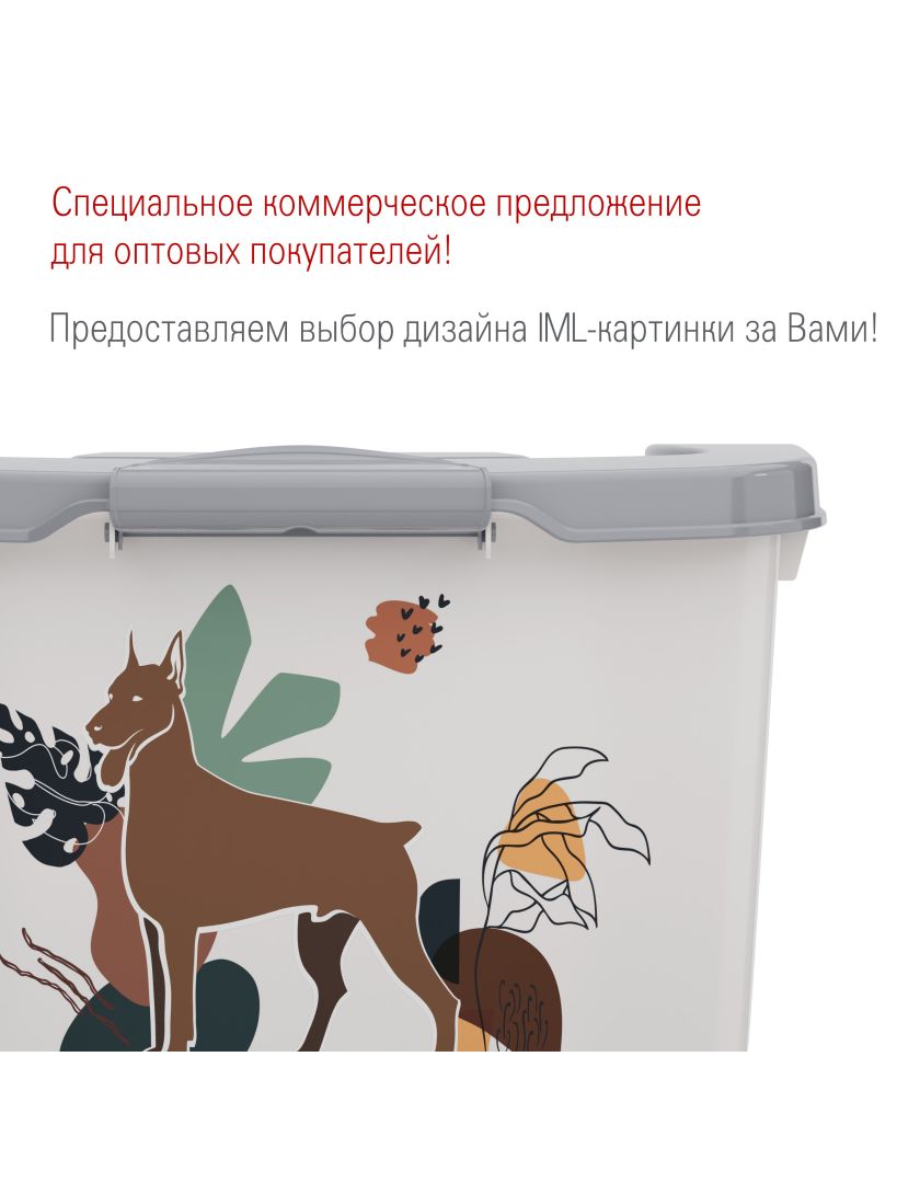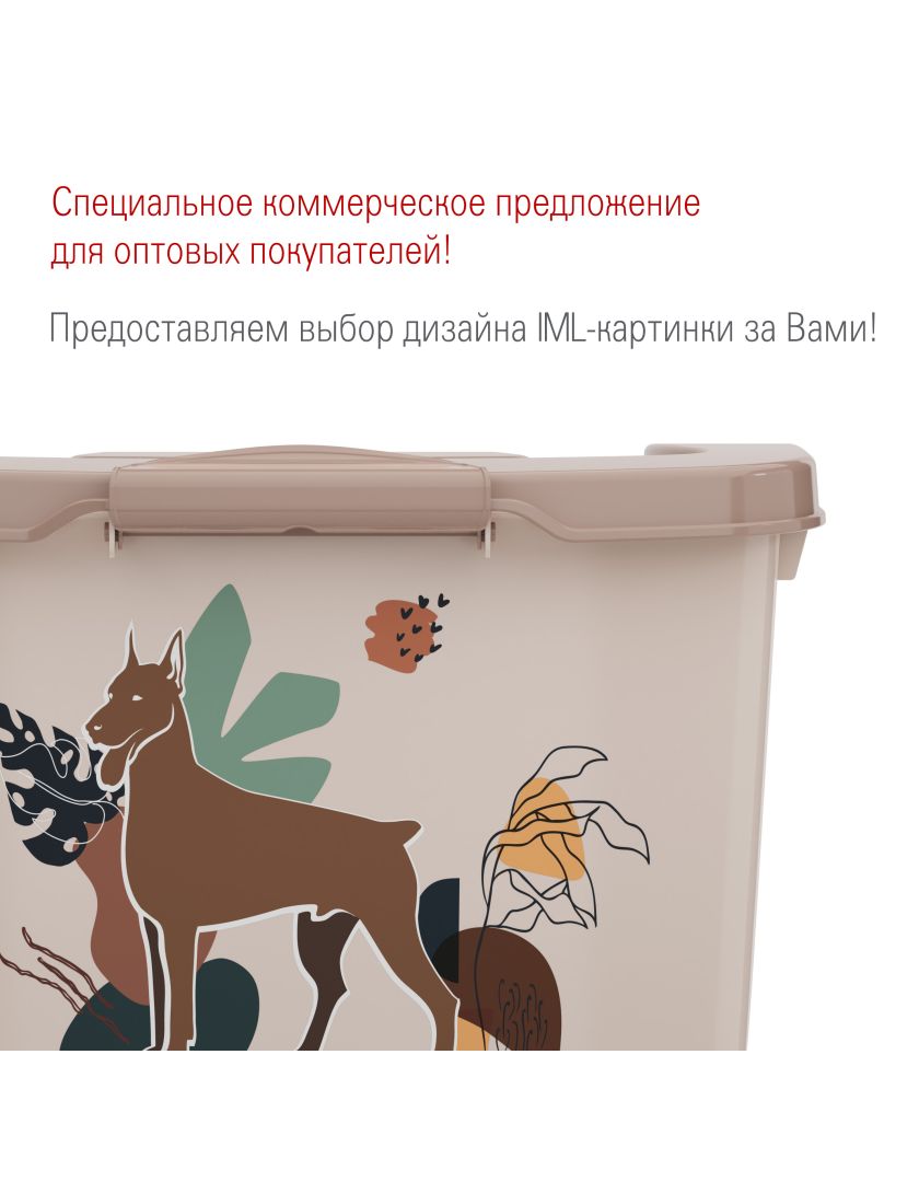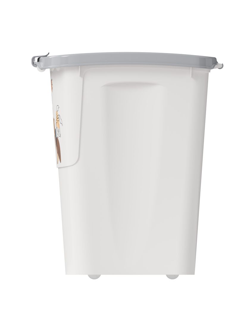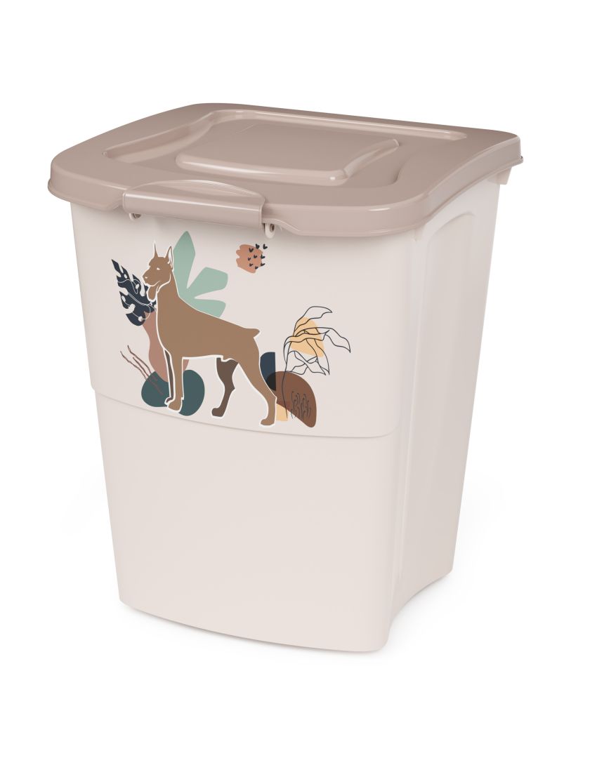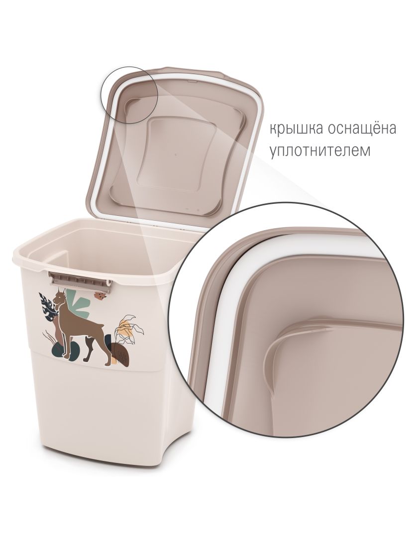 Контейнер вмещает от 14,5 до 16 кг сухого корма в зависимости от плотности корма и размера гранул. Изделие оснащено колесиками для удобства транспортировки и крышкой, которая плотно прилегает к контейнеру за счёт уплотнителя, тем самым обеспечивая герметичность. Хранение корма в специальной таре предотвращает заветривание корма, попадание влаги, сохраняя вкусовые качества продукта. Контейнер выполнен из пищевого высококачественного пластика, отличается особой прочностью и надежностью. Также стоит отметить, что способ хранения сухих кормов в специальной таре обеспечивает порядок и чистоту в доме.