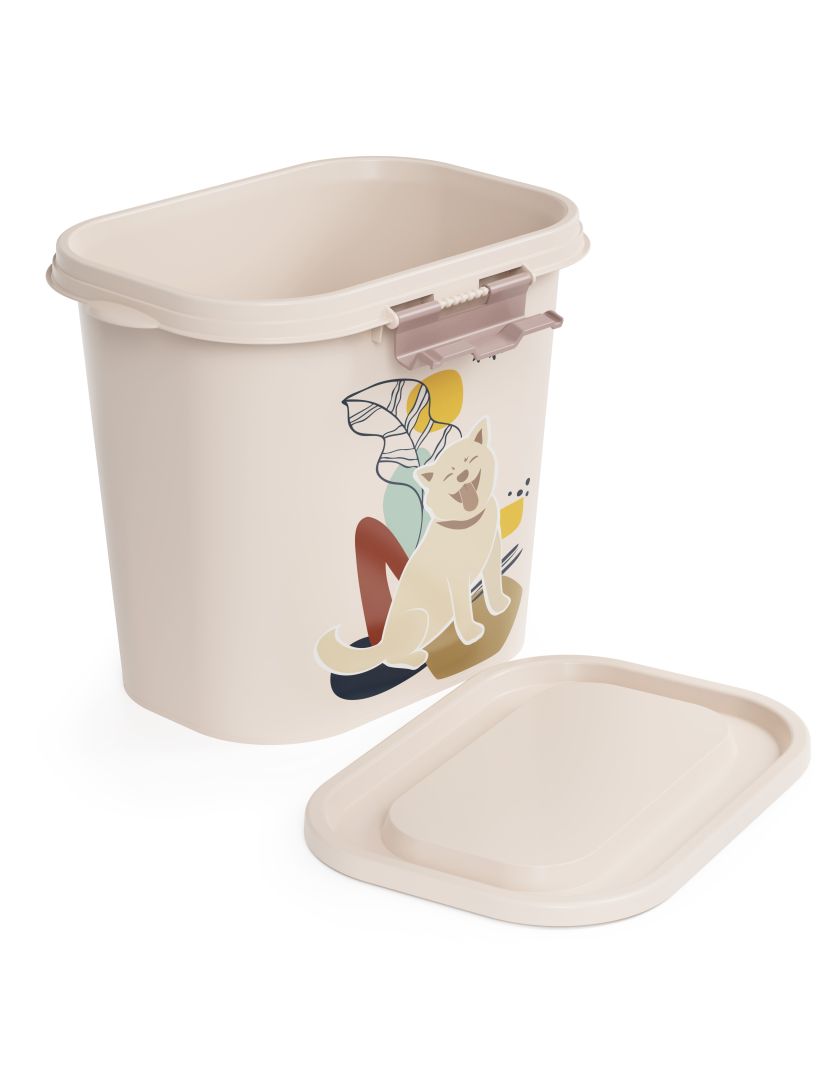 Объёмный контейнер с крышкой на защёлках предназначен для хранения сухого корма для животных. Это гораздо удобнее, чем держать большие пакеты, из которых корм может просыпаться. Плотно закрывающаяся крышка предотвращает заветривание корма, попадание влаги и вредителей, сохраняя вкусовые качества продукта. Изделие изготавливается из пищевого пластика. Тематический рисунок на корпусе позволяет не запутаться в многообразии ёмкостей для разных животных.
