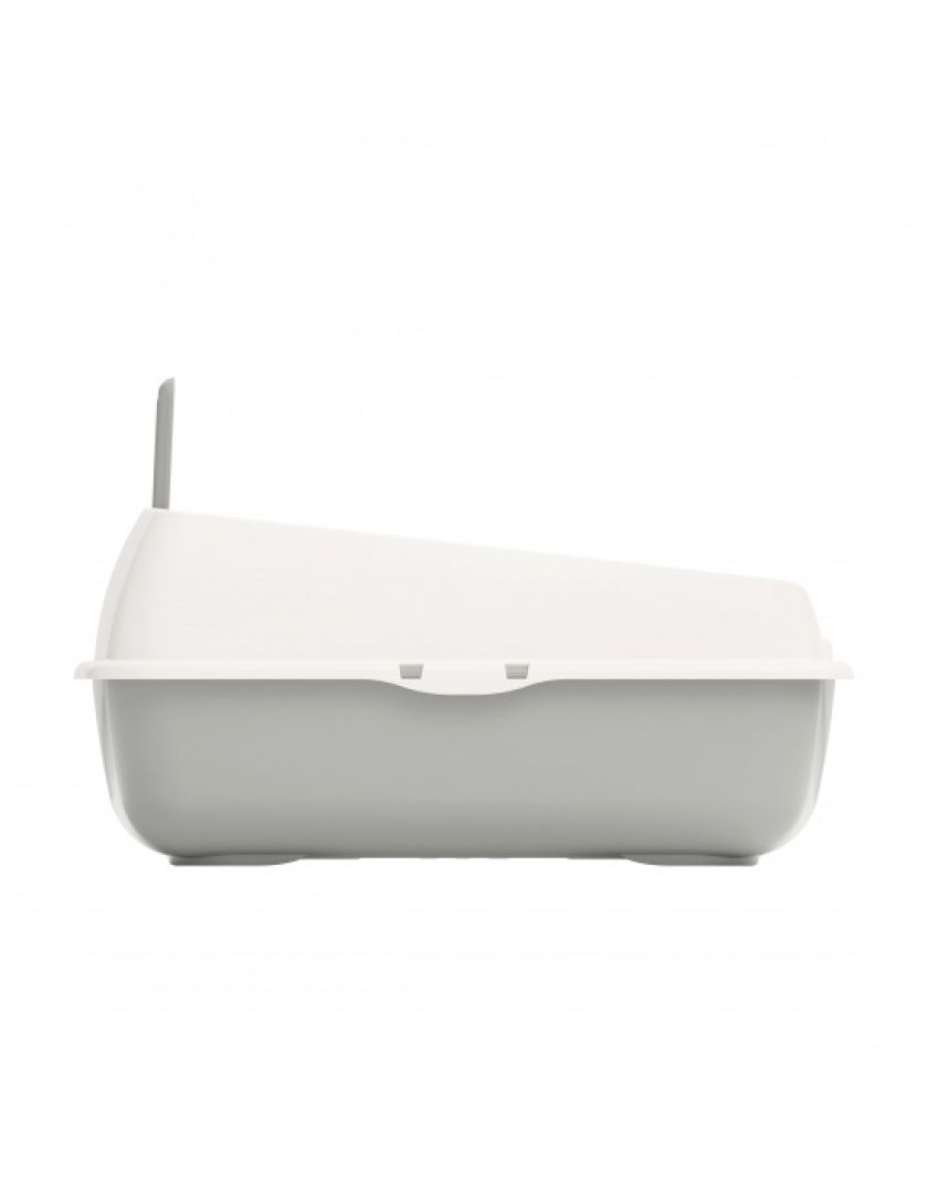 Благодаря высокому борту наполнитель не разбрасывается по комнате, а остаётся в лотке. Борт крепится к лотку крепкими защелками и легко убирается при необходимости.