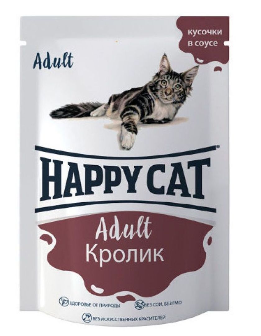 Полноценный корм Happy Cat Кролик кусочки в соусе обеспечивает правильное и разнообразное питание кошки.