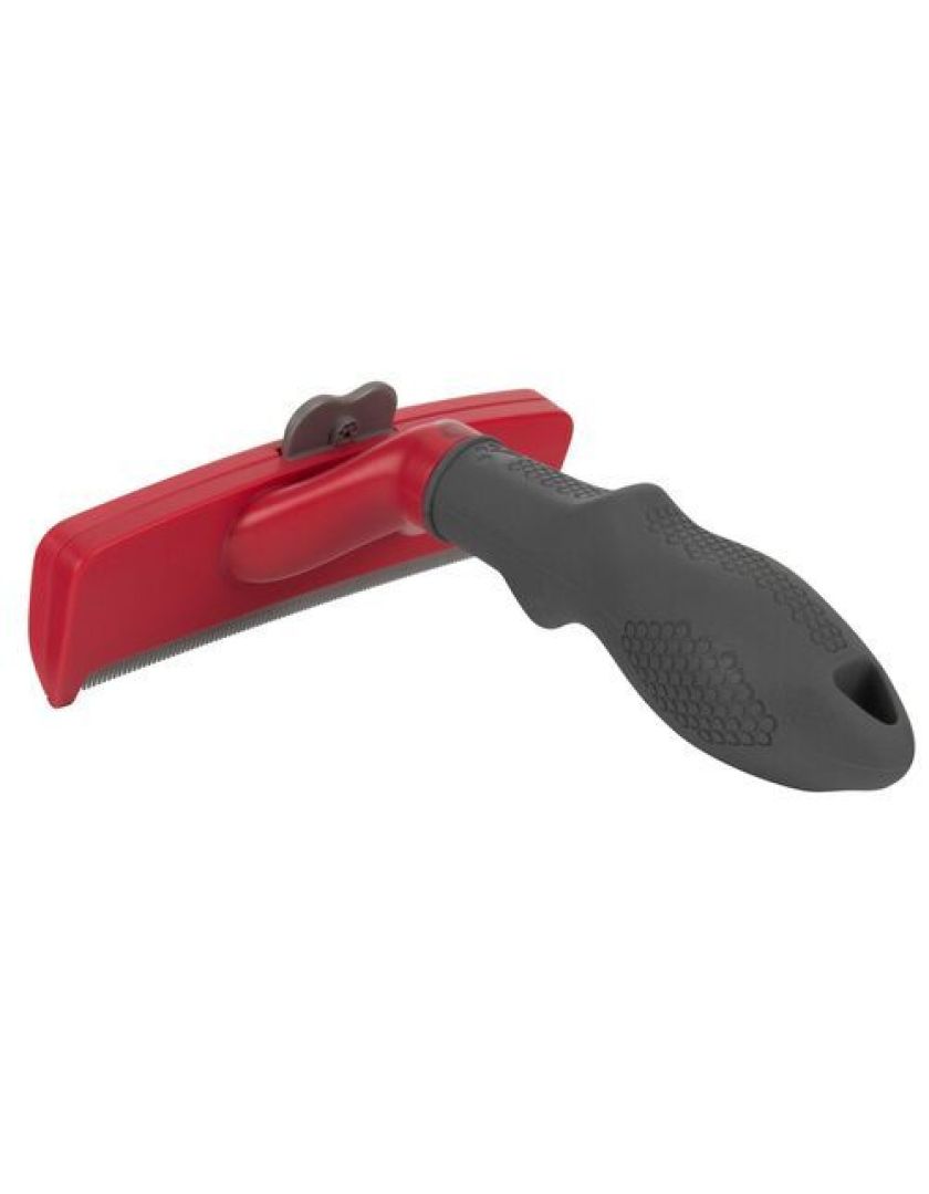 Со специальной кнопкой для легкой очистки лезвия от удаленной шерсти. Лезвие из нержавеющей стали глубоко проникает под верхний слой шерсти животного и безопасно удаляет подшерсток .