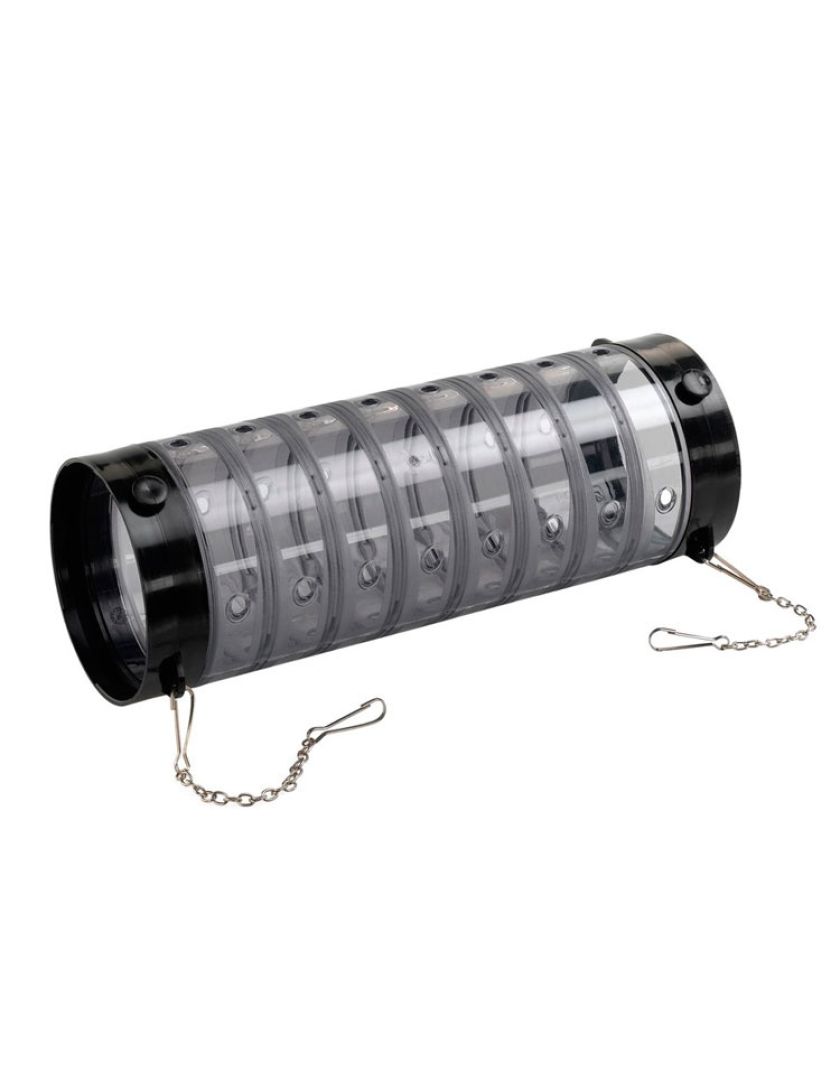 Оборудован металлическими цепочками для подвешивания к клетке и несколькими отверстиями для циркуляции воздуха.
