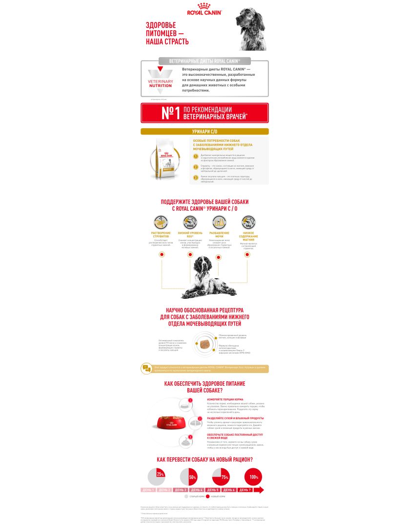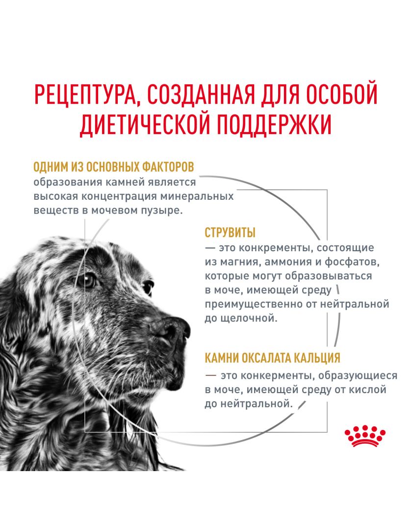 РЕКОМЕНДАЦИИ. Перед началом диетотерапии проконсультируйтесь с ветеринарным врачом. Струвитные камни растворяются при применении диеты Urinary S/O в течение 5–12 недель. Для предупреждения рецидивов уролитиаза курс лечения следует продолжать еще не менее 6 месяцев. По истечении этого времени необходимо повторное общее обследование, чтобы определить целесообразность диетотерапии на протяжении всей жизни собаки. Убедитесь, что собаке всегда доступна чистая свежая вода. ПРИМЕЧАНИЕ. Для собак пожилого возраста перед применением рекомендуется оценка почечной функции.