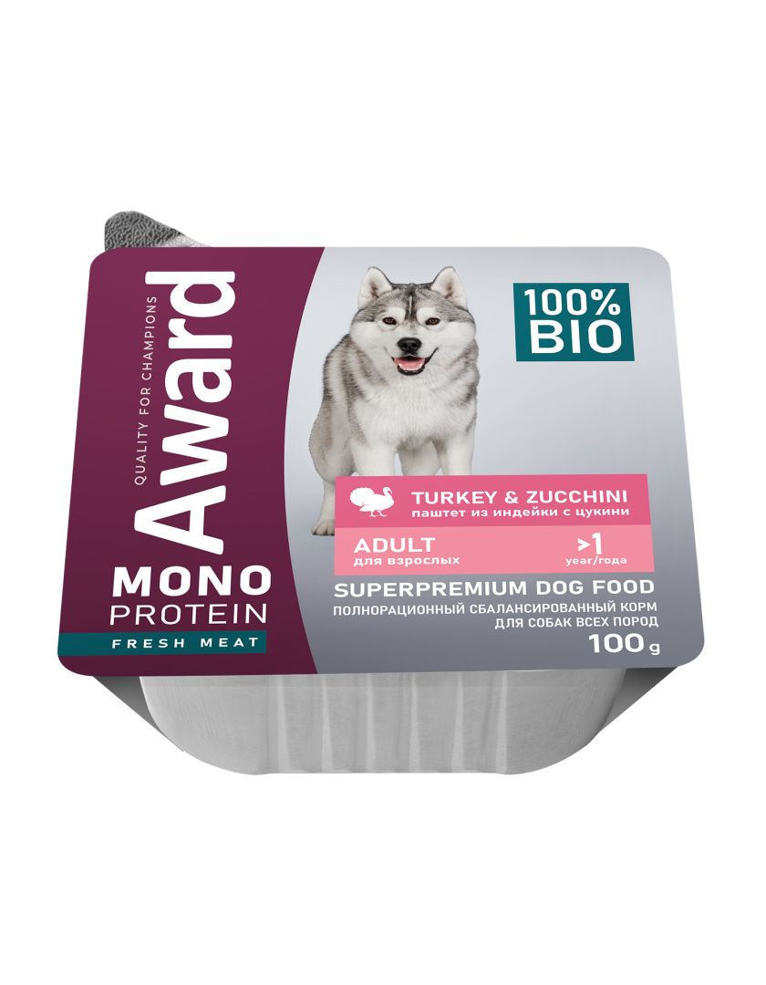 Влажный корм для собак AWARD Monoprotein паштет из индейки с цукини