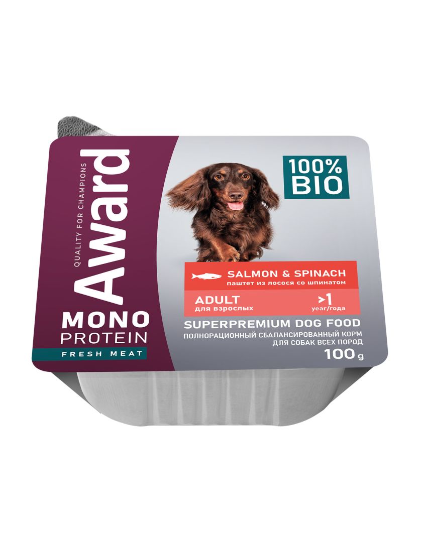 Влажный корм для собак AWARD Monoprotein паштет из лосося со шпинатом