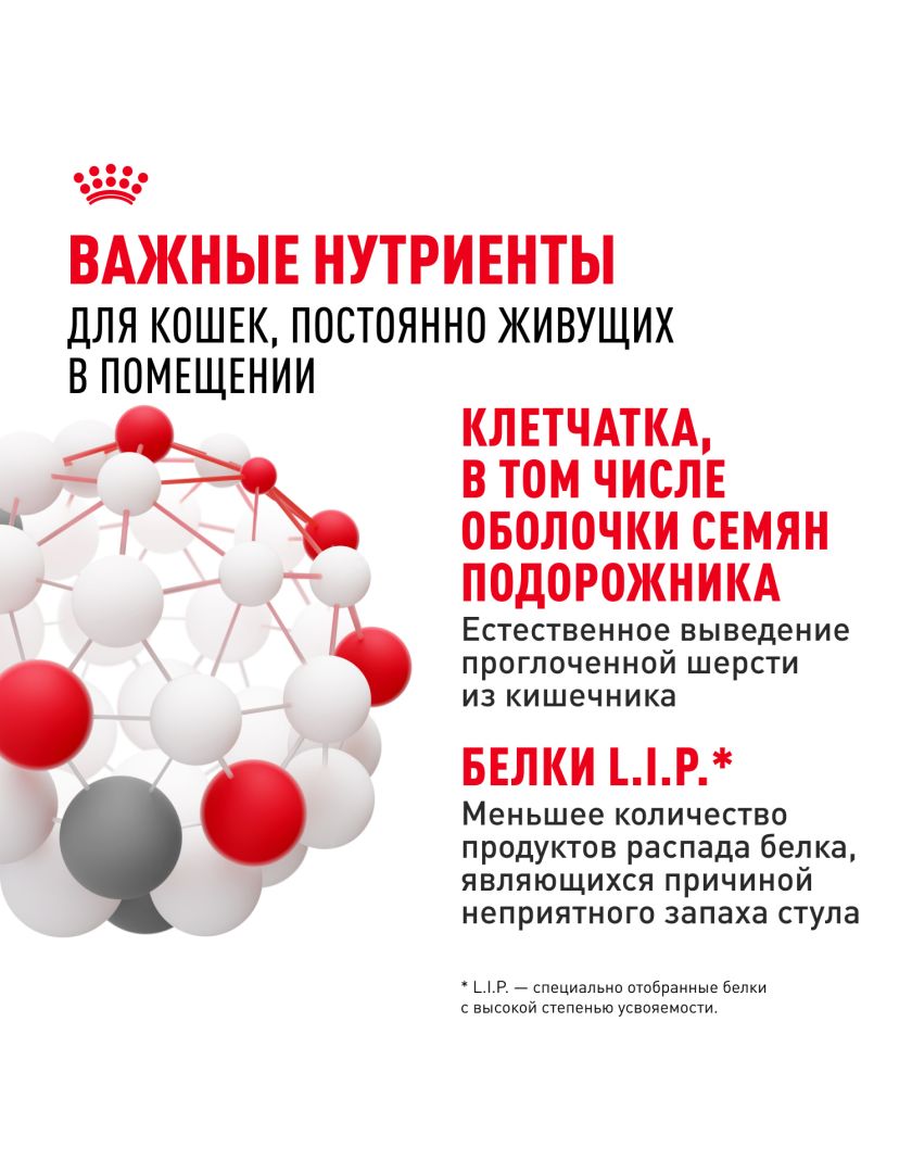 Формула сухого продукта ROYAL CANIN® Indoor 27 (ИНДОР 27) поддерживает здоровое пищеварение, оптимальный вес и здоровье мочевыделительной системы кошки, а также способствует снижению запаха фекалий, выведению волосяных комочков.