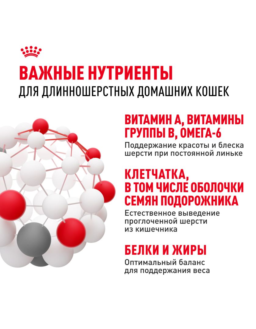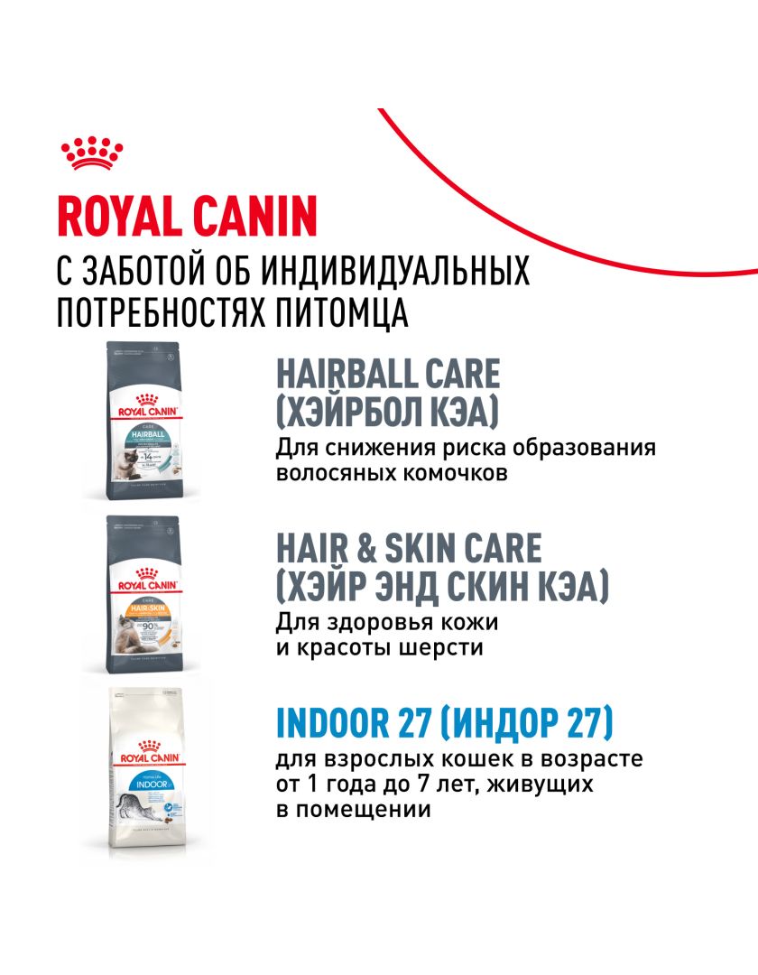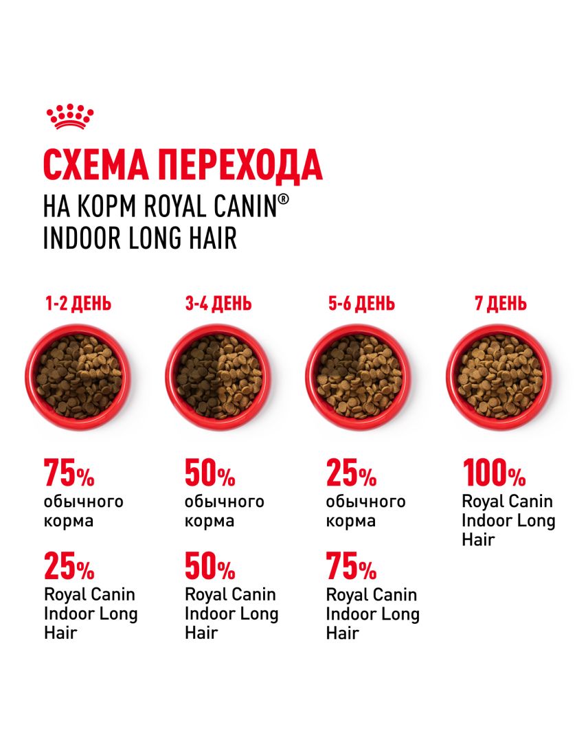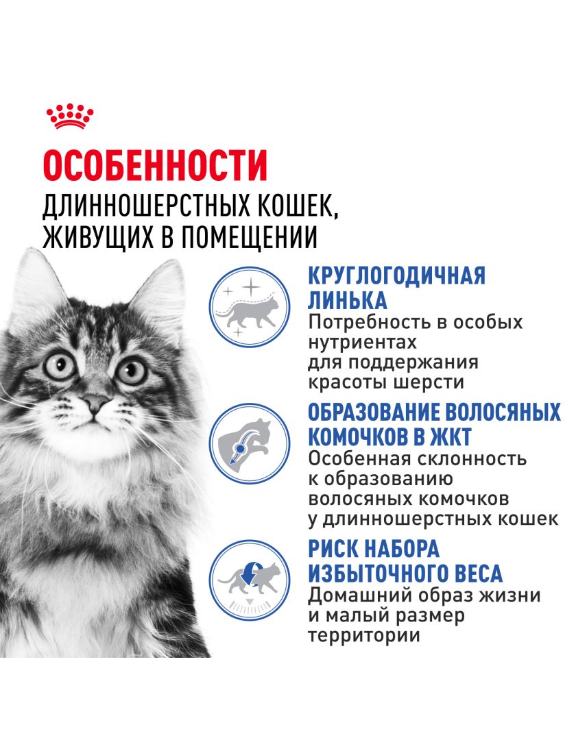 Корм сухой полнорационный сбалансированный для взрослых длинношерстных кошек (в возрасте от 1 года до 7 лет), живущих в помещении INDOOR LONG HAIR (ИНДОР ЛОНГ ХЭЙР) ROYAL CANIN®, подходящий для длинношерстных кошек, постоянно живущих в помещении, в возрасте от 1 года до 7 лет, специально разработан с учетом потребностей вашей кошки в питательных веществах.