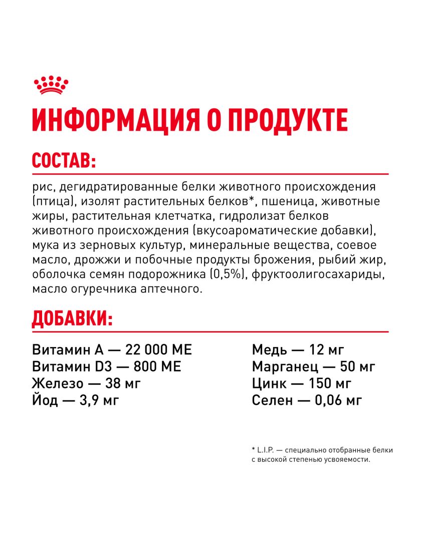 *L.I.P.: специально отобранные белки с высокой степенью усвояемости.