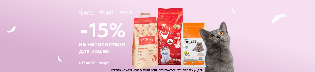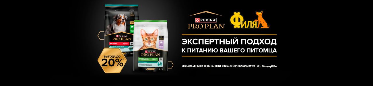 Скидки до 15% на сухие и влажные корма Pro Plan для кошек и собак до 30.11.25.